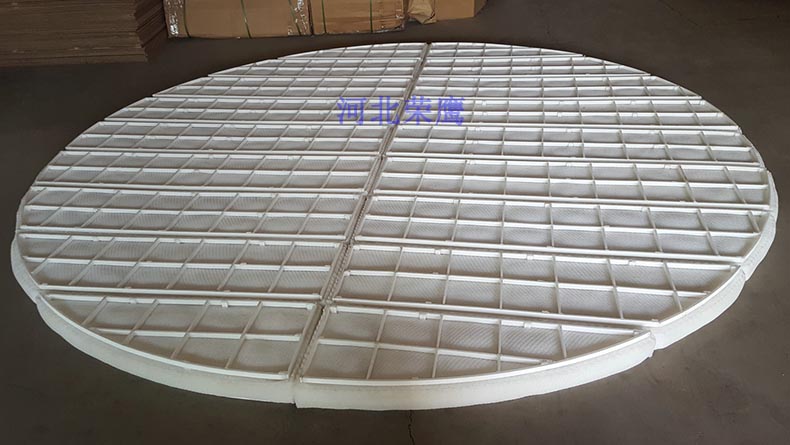 下裝式絲網(wǎng)除沫器的安裝順序依次是壓條,壓圈,絲網(wǎng)除沫器網(wǎng)塊,托圈,托梁。下裝式絲網(wǎng)除沫器的規(guī)格表示:X3200-150 SP S30403/S30403,"X"即“下”的拼音首字母。下裝式絲網(wǎng)除沫器若采用DP型(高效型)絲網(wǎng)除沫器,除沫效率最佳,但阻力會增大。