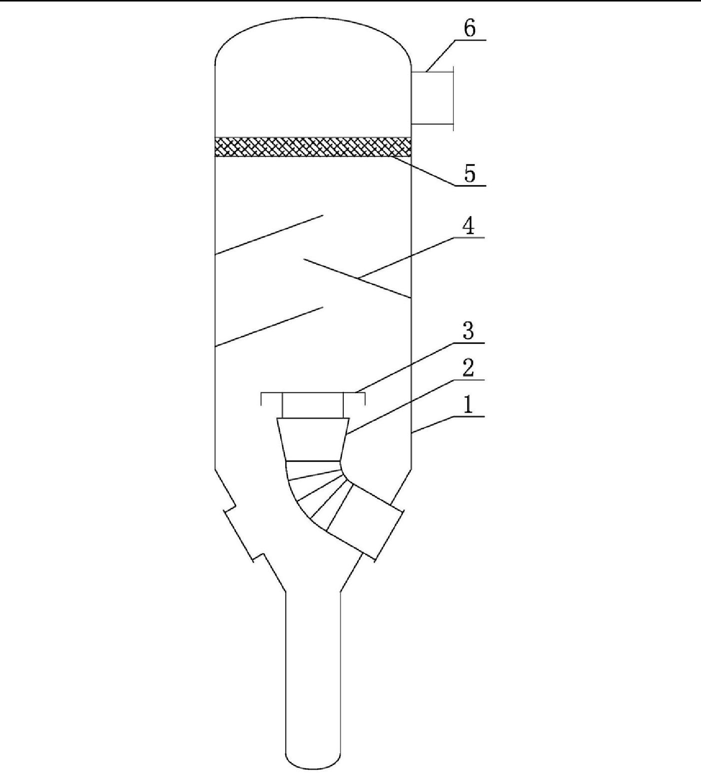 外筒體1內(nèi)側(cè)壁設(shè)有絲網(wǎng)除沫器5,絲網(wǎng)除沫器5位于多個(gè)上擋板4上方。如圖1所述